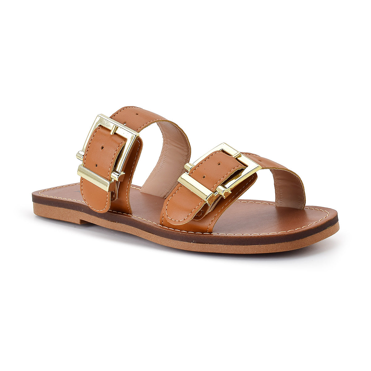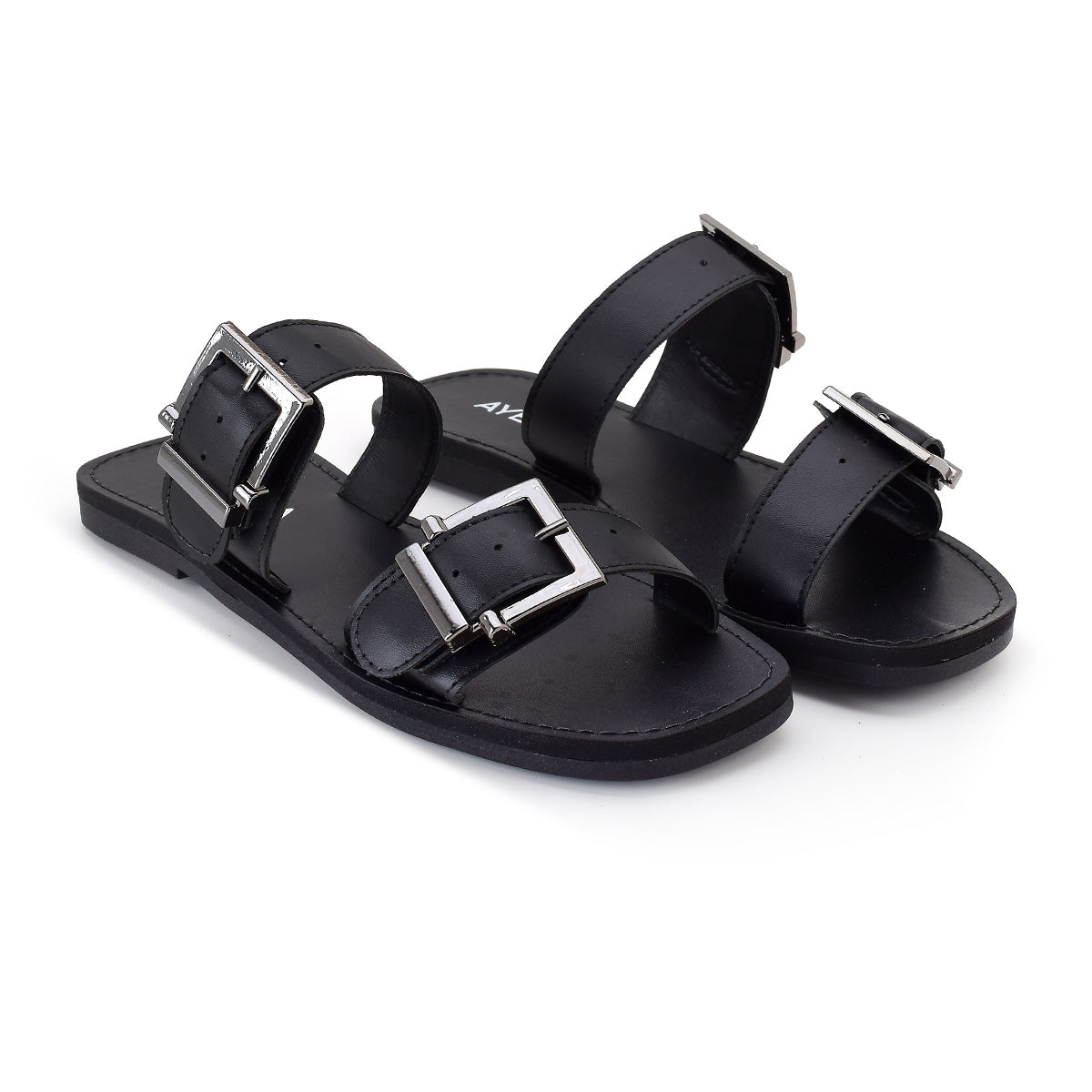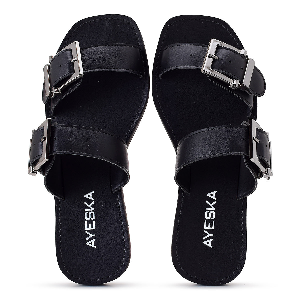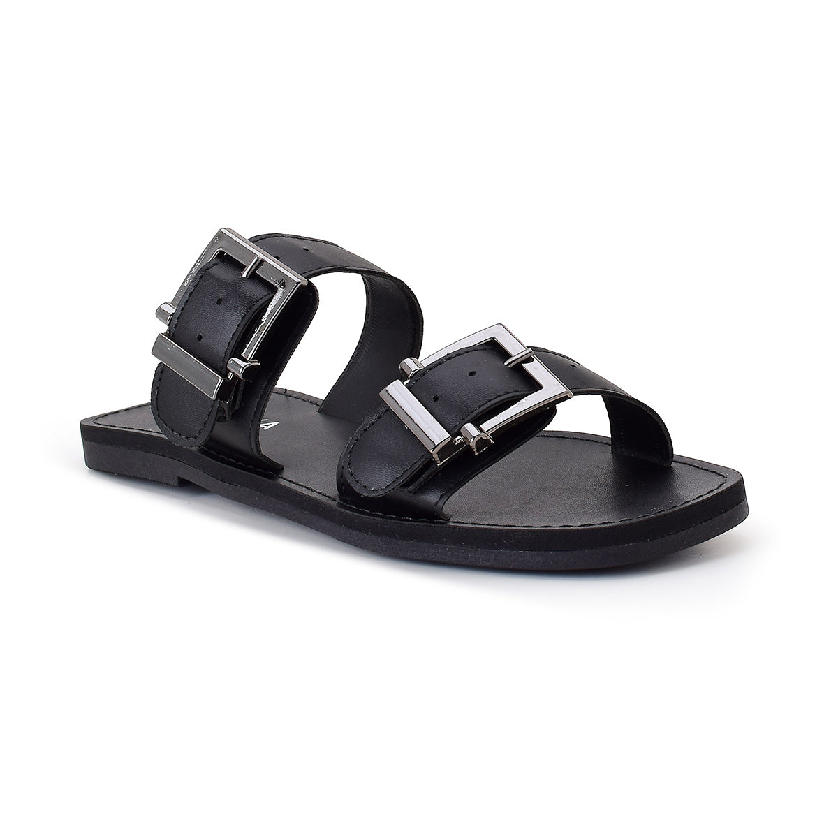 Sandália Feminina Rasteira Preta com Fivelas Duplas Ajustáveis Conforto Casual